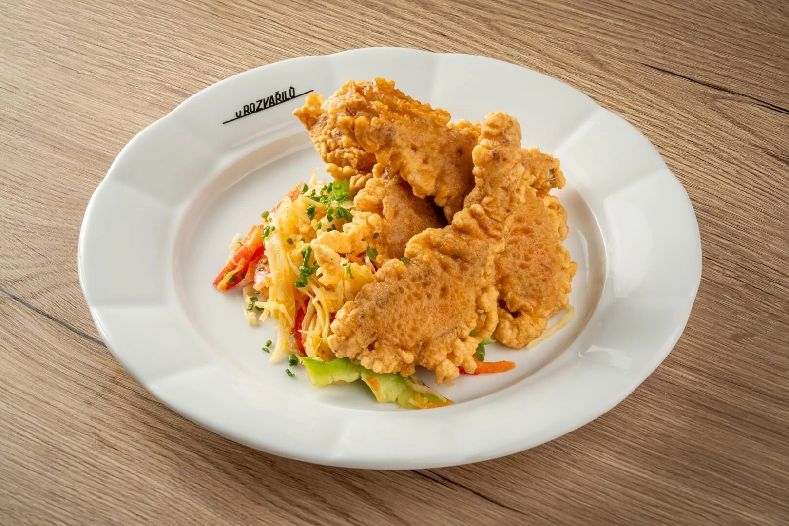 z volného chovu rodinné farmy Němcových se zelným pikantním salátem a chlebem Pivák